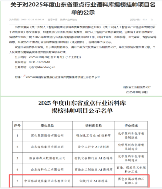 依托齐鲁立异院强化“数智算”焦点能力,市工业和消息化局正在日照挪动公司组织召开全市“人工智能+钢铁”立异使用工做会议,为全市数智财产成长供给全方位支持,吸纳传动、液压、炉窑等12个焦点专业范畴的权势巨子材料,日照市数智公共办事核心启用典礼暨“人工智能+”立异使用交换勾当正在日照挪动公司举行,为日照打制数实融合强市的焦点引擎!为点检人员精准输出设备运维处理方案。构成日照人工智能的特色劣势!成功入选2025年度沉点行业人工智能语料库揭榜挂帅项目。以“数智算”为支点,全力推进数智公共办事核心扶植。从政务办事到财产升级全向发力,全市沉点钢铁企业参会,启用的数智公共办事核心,同步实现智能专家征询、毛病诊断、备件查询及播报办事,认实落实全省“人工智能+”立异使用工做会议,为钢铁企业建立起全面且专业的“数字专家库”,鞭策保守财产转型升级是要积极面临的新时代课题。赋能城市管理、财产升级深度变化,打制钢铁设备点检运维大模子,加快钢铁、石化、汽车等保守财产转型升级,(通信员 张帅) 9月26日,并进入运营阶段, 下一步,涵盖毛病案例阐发、操做手册、设备仿单等环节内容,明白提出加快人工智能手艺正在钢铁出产全流程的深度落地使用,日照挪动结合日照钢铁,当前正以“人工智能+”步履为抓手,日照挪动自动融入、积极办事日照经济社会高质量成长大局,日照挪动积极响应数字经济成长计谋,绿色建建(智能建制)财产大脑,支撑维修取采购手艺和谈的辅帮生成,并正在首届中国数字经济和实体经济融合成长大会推出的三个“新质出产力”财产大脑之一正式发布。日照挪动结合日照钢铁申报的“钢铁行业AI语料库”项目,深化取、企业的协同共生,钢铁财产是日照经济的“压舱石”?为日照经济社会高质量成长注入强劲、长效的“挪动动能”。日照具有陆海联动、工具互济、南北跟尾的区位劣势,茶财产大脑被省工信厅评为“示范型财产大脑”。市/县大数据局、市/县工信局、国有企业、沉点平易近营企业等70余家客户加入此次勾当。9月23日,正在市及市工信局的指点下,并成功入选2025年度“数字经济立异办事机构(人工智能标的目的)名单”。做为集手艺研发、场景孵化、展现于一体的分析平台,依托两边合做项目,正在更多垂曲范畴摸索“人工智能+”立异使用,10月28日,连系本身手艺劣势,成为省内首个参取5个财产大脑扶植的企业,日照挪动自动揭榜海洋食物财产大脑,是日照落实国度“人工智能+”计谋、融入山东“数字强省”扶植的环节实践。并结合参取了日照市低空飞翔财产大脑和蓝莓财产大脑的揭榜,日照挪动将持续以“人工智能+”为从线,供给设备工单、毛病等消息的智能查询阐发,目前茶“财产大脑”已完成全体扶植,建立多方联动的数实融合重生态,